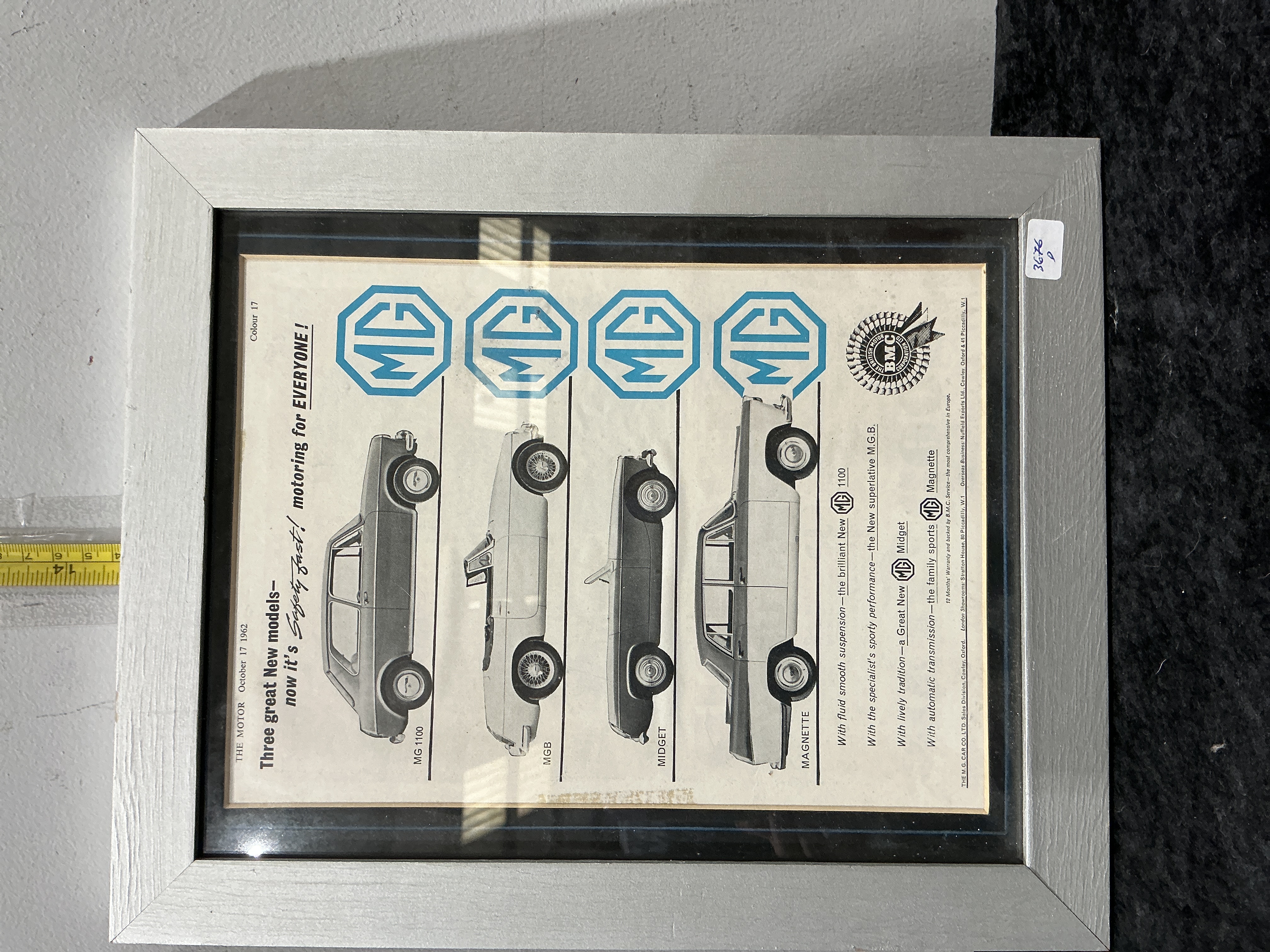 Framed Original MG Motors Advertisement from The Motor Magazine dated 17 October 1962
