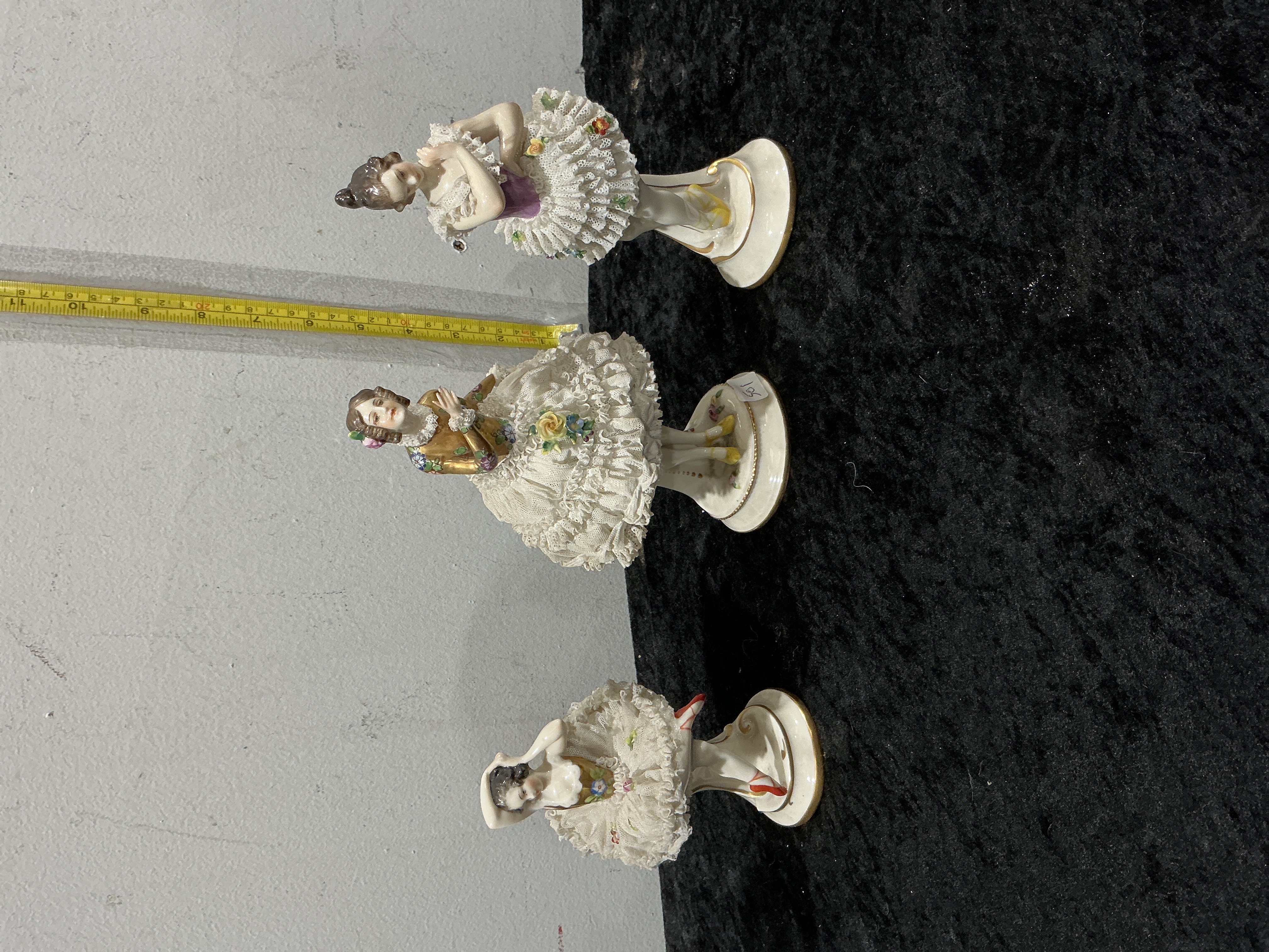 Three German Dresden-style Porcelain Lace Figurines